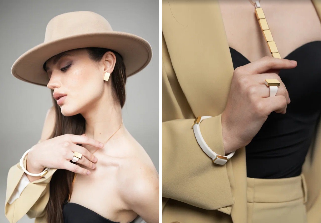 Золотые серьги или браслеты с элементами каучука отлично подойдут для создания повседневного образа. Они добавят нотку стиля к вашим джинсам и футболке, придавая наряду современный вид.